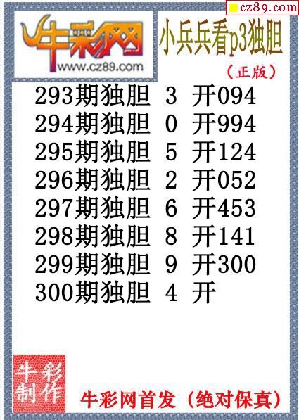 > 小兵兵独胆300期体彩P3图谜(原创)